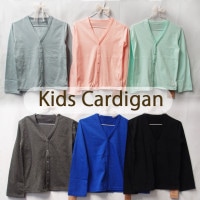 トップ > 薄手綿100%天竺のページ(0356) > キッズサイズ夏用シンプルなVネック無地カーディガン(110cm 120cm)0356 綿100% 天竺 体温調節 スナップボタン 長袖 薄手カーディガン メール便可20