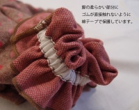 ゴムが直接babyのお肌に当たらない様、綿テープで保護しています。