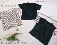 トップ > トップス > 半袖T > 【在庫処分セール・さらにクーポン利用可】 ひんやりドライタッチ ボーダー 夏用 ビッグシルエット 半袖 Tシャツ 綿麻(80cm 90cm 95cm 100cm 110cm 120cm)ゆったり