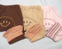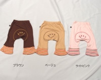 【在庫処分セール・さらにクーポン利用可】 ふんわり柔らかい接結素材B2799ニコちゃん刺繍裾ボーダー10分丈モンキーパンツ